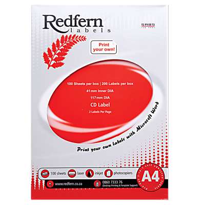 Laser Redfern Labels, 117mm, 41mm Inner, 2 Per Page.