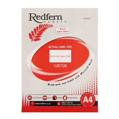 Laser Redfern Labels, 63×38.1mm, 21 Per Page With Border