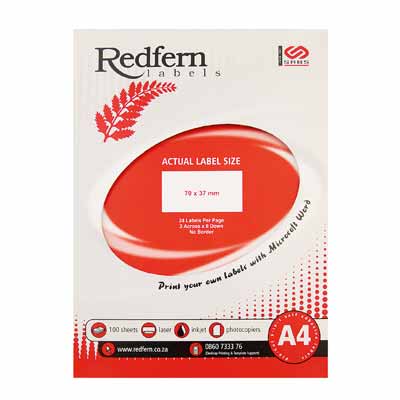 Laser Redfern Labels, 70x37mm, 24 Per Page.